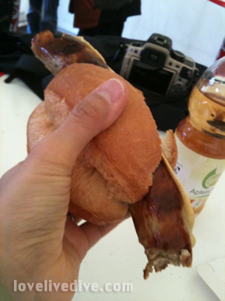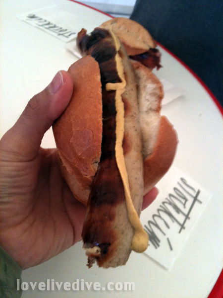 パンを挟んでホットドッグみたいにして食べるのは、ソーセージがアツすぎて持てないからでしょうね。